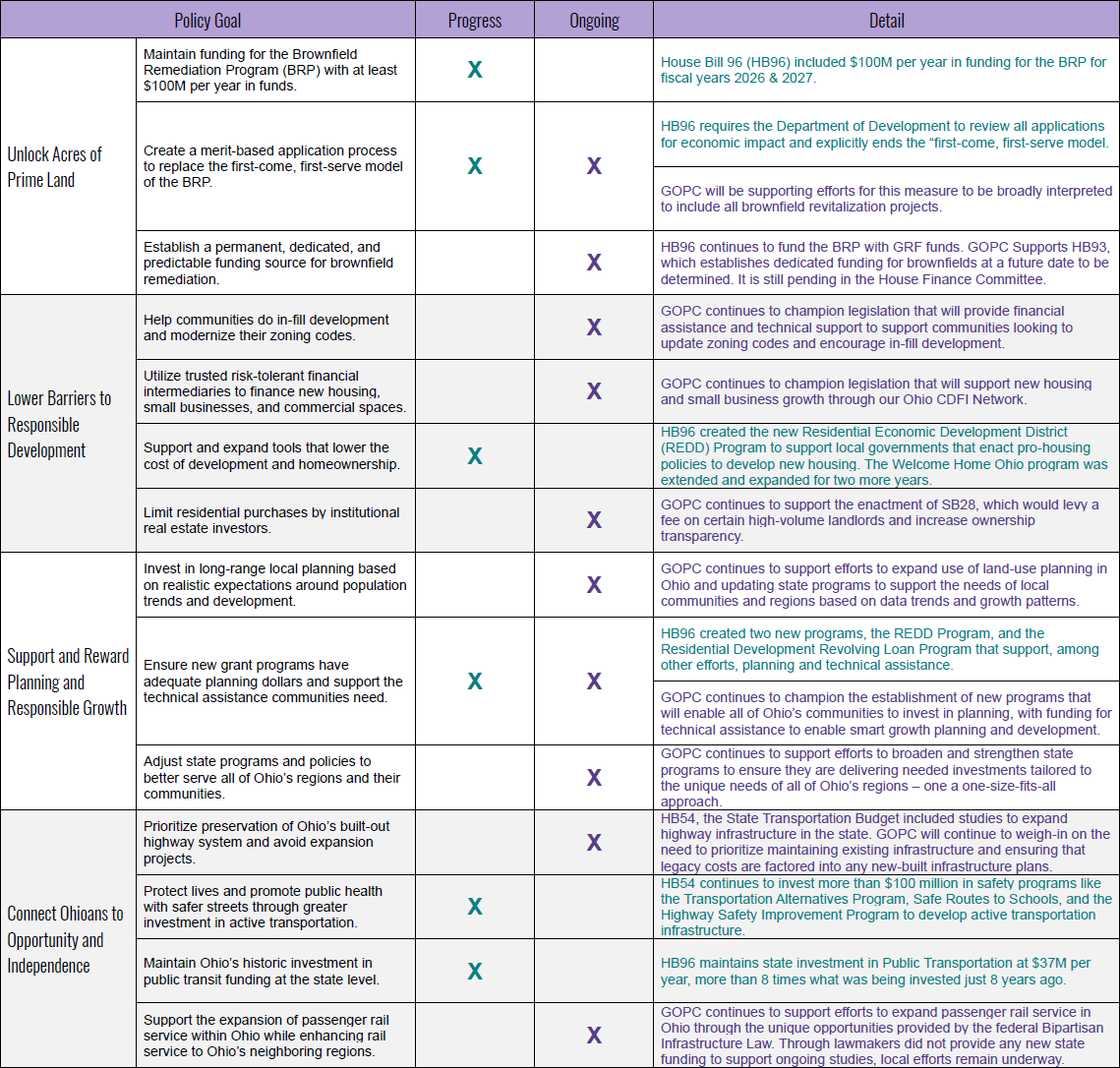 GOPC’s 2025-2026 public policy agenda, Responsible Growth, Sustained Prosperity, recognizes the path to prosperity can look different for different places. State policies and tools that are sensitive to local context will ensure all communities continue to contribute to Ohio’s standing as an economic leader.