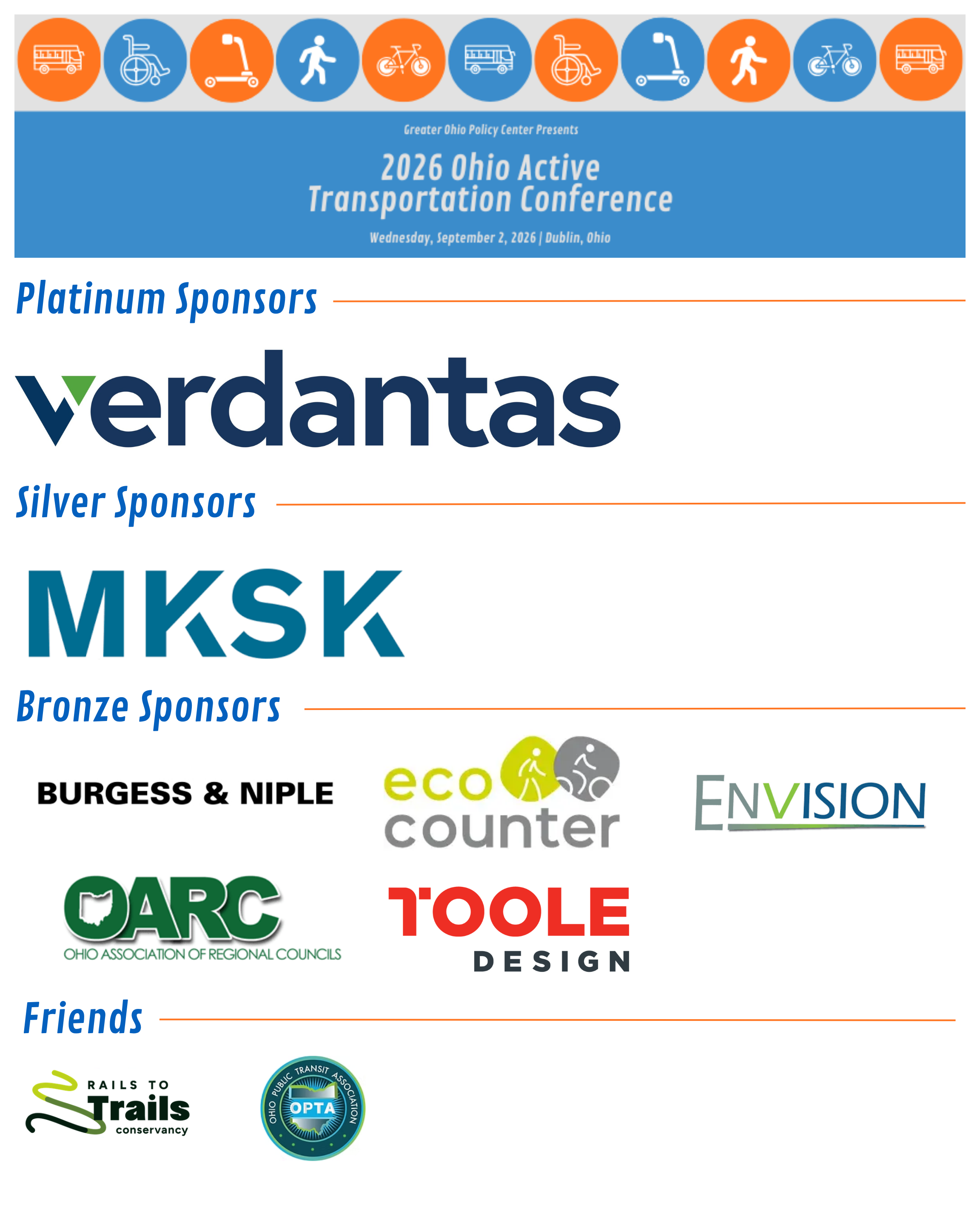 If you are interested in becoming a sponsor for the 2026 Ohio Active Transportation Conference, please visit our sponsor page at the link below.